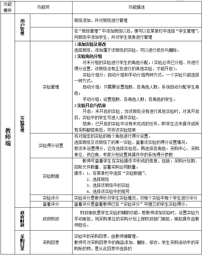 2、實(shi)(shi)驗由(you)教師創建并設(she)置,學(xue)(xue)(xue)生分(fen)別扮演了(le)采(cai)購活動(dong)(dong)(dong)中(zhong)的(de)采(cai)購單位、采(cai)購中(zhong)心、供應商(shang)、專(zhuan)家四種角(jiao)色。實(shi)(shi)驗分(fen)組(zu)(zu)分(fen):自動(dong)(dong)(dong)分(fen)組(zu)(zu)和手動(dong)(dong)(dong)分(fen)組(zu)(zu)兩種方(fang)式(shi)。自動(dong)(dong)(dong)分(fen)組(zu)(zu):只需(xu)要設(she)置組(zu)(zu)數(shu)(shu)、各角(jiao)色人數(shu)(shu),系統(tong)自動(dong)(dong)(dong)分(fen)配(pei)學(xue)(xue)(xue)生角(jiao)色;手動(dong)(dong)(dong)分(fen)組(zu)(zu):設(she)置組(zu)(zu)數(shu)(shu)、各角(jiao)色人數(shu)(shu),各角(jiao)色的(de)學(xue)(xue)(xue)生。