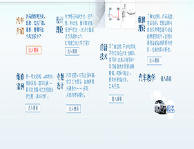 系統操作分兩大塊汽車結構和檢測維修的學習,其中穿插理論學習以及視頻講解教學。本系統從發動機、傳動系、行駛系、轉向系、制動系、汽車車身、電氣設備、空調系統八個部分對汽車結構進行詳細介紹和闡述。其中,傳動系、行駛系、轉向系、制動系四個模塊屬于底盤的四個組成部分,電器設備和空調系統則屬于車身的部分。