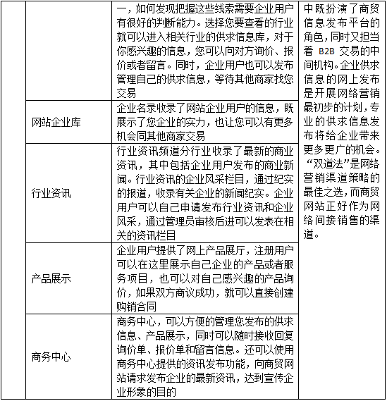 (3)商貿(mao)型(xing)網站:供求(qiu)信息(xi) 企(qi)業(ye)名錄 行業(ye)咨詢 產品展示 商務中心