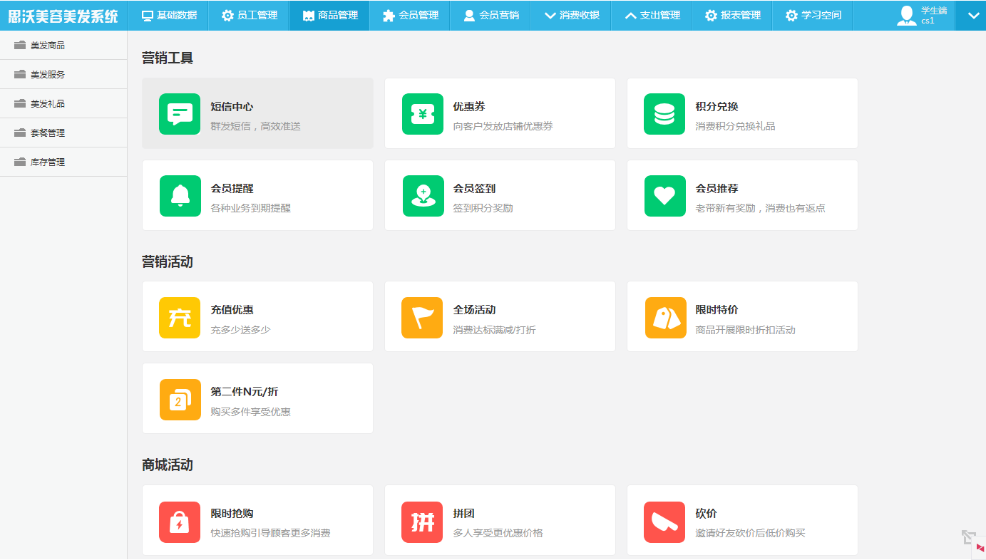 思沃美容(rong)美發模擬實(shi)訓系(xi)統(tong)是一款專業針對美容(rong)美發行業開(kai)發的會(hui)員收(shou)銀(yin)管(guan)(guan)理(li)系(xi)統(tong),門店業務環節全面(mian)覆蓋,會(hui)員管(guan)(guan)理(li)&營銷(xiao)一步(bu)到(dao)位,適合學生真實(shi)模擬美容(rong)美發店進行會(hui)員管(guan)(guan)理(li)、會(hui)員營銷(xiao)、店鋪收(shou)銀(yin)、打(da)折積分、儲值消(xiao)費、禮品(pin)兌換、商品(pin)管(guan)(guan)理(li)、商品(pin)進銷(xiao)存(cun)、員工提成(cheng)、財(cai)務報表(biao)等基本操作。